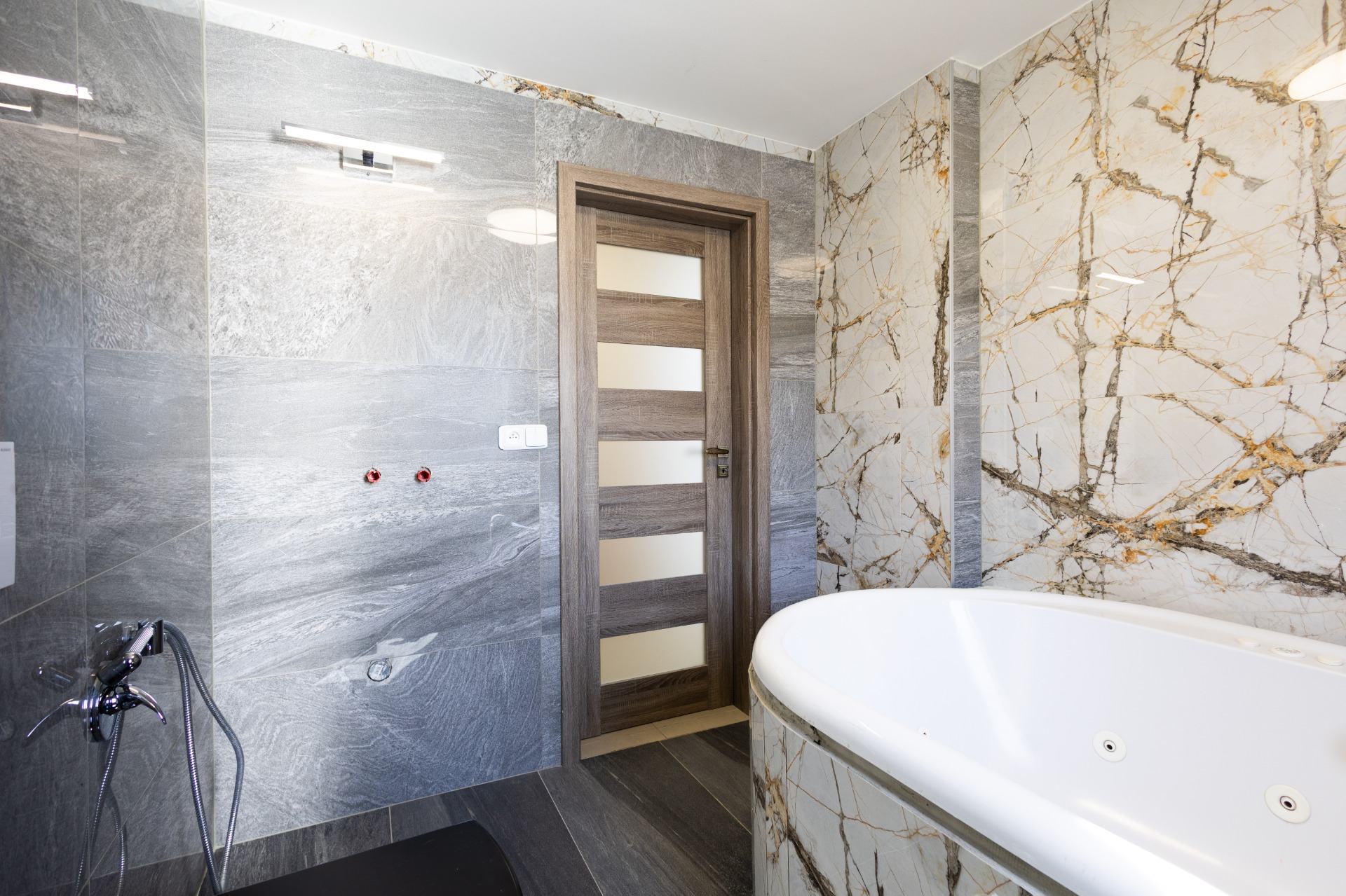 Okna jsou v celém domě plastová 2 skla, v místnostech, které směřují k silnici a na terasu jsou speciální protihluková 3-skla. Elektřina je v celém domě v mědi, voda v plastu. V koupelnách jsou použité velkoformátové obklady s mramorovým vzorem, různé okrasné ornamenty na světlech utvářejí ojedinělou atmosféru.