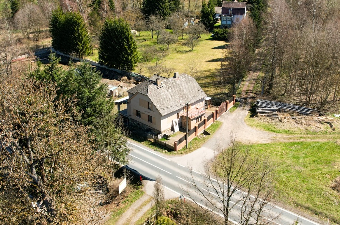 1. byt se nachází v přízemí domu a je o dispozici 2+1. Po vstupu hlavními dveřmi ze zahrady vejdete do velkého obývacího pokoje (takový trochu americký styl uspořádání). Na tento pokoj navazuje vpředu kuchyně s jídelním koutem. Z pravé strany pak navazuje ložnice, samostatná koupelna s toaletou, vstup do kotelny a místnost využívaná jako skládek. Schodiště nás zavede do mezipatra, které spojuje tuto jednotku s dalším bytem a se zádveřím.